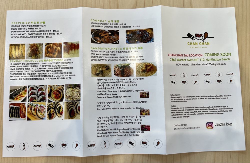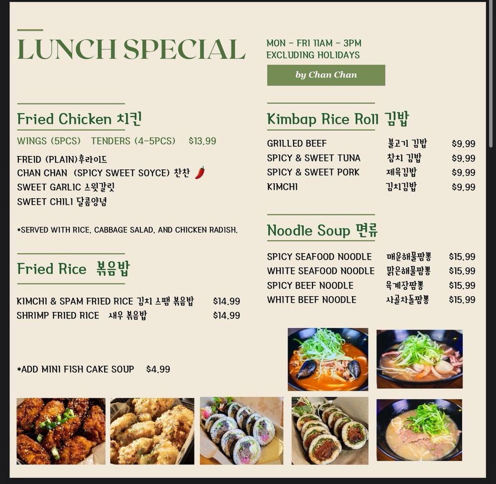 Welcome to Chan Chan, Huntington Beach's gem specializing in Korean chicken wings! Nestled at 7862 Warner Ave UNIT 110, Chan Chan offers a vibrant dining experience infused with authentic flavors. The menu shines with its **fried chicken wings**, available in enticing varieties like Sweet Chili, Honey, and original, accompanied by the irresistibly rich Chan Chan sauce—a crowd favorite.