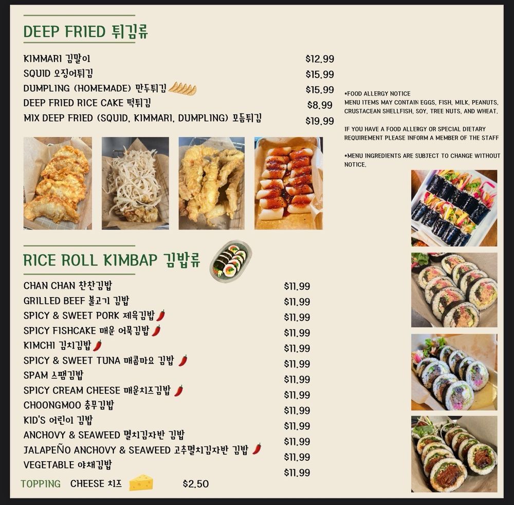 Lunch specials cater to those seeking a quick yet fulfilling meal, featuring dishes such as Spicy Beef Noodle and Spicy Seafood Noodle. Customers rave about the generous portions, ensuring you're well-fed after each visit. Dishes like the Spicy Pork Kimbap and seafood fish cakes blend tradition with innovation, showcasing immense flavor and texture.